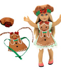 Don't forget to add our Matching Child Outfit. Your holiday dolls can match while baking Holiday sweets with a one-size-fits-most gingerbread apron and bonnet